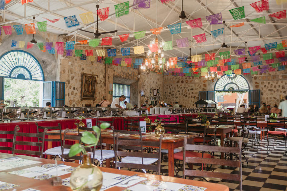 Drive to the Hacienda for 30 or 40 minutes. Swim in the cenote and enjoy buffet lunch with regional and national dishes for 2.5 hours